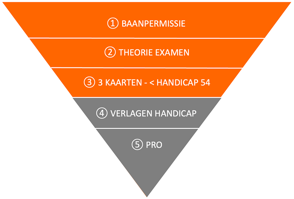 Mijn voorkeur gaat uit om te starten bij de PAR 3 met 9 holes. De succes beleving is dan vaak hoger en daardoor ga je meer spelen.